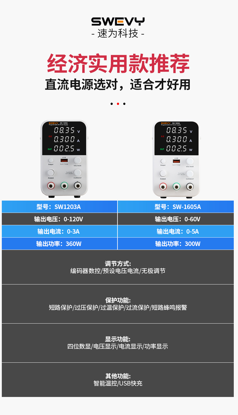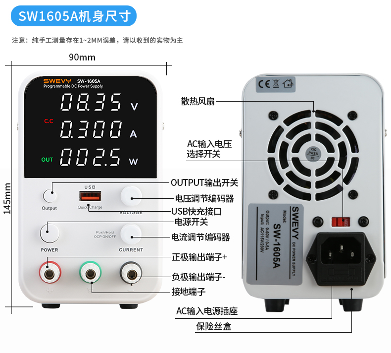 速為可調(diào)直流穩(wěn)壓電源 開關(guān)電源 USB快充 高精度數(shù)顯直流手機維修電源 SW-1605A(60V5A帶USB快充)